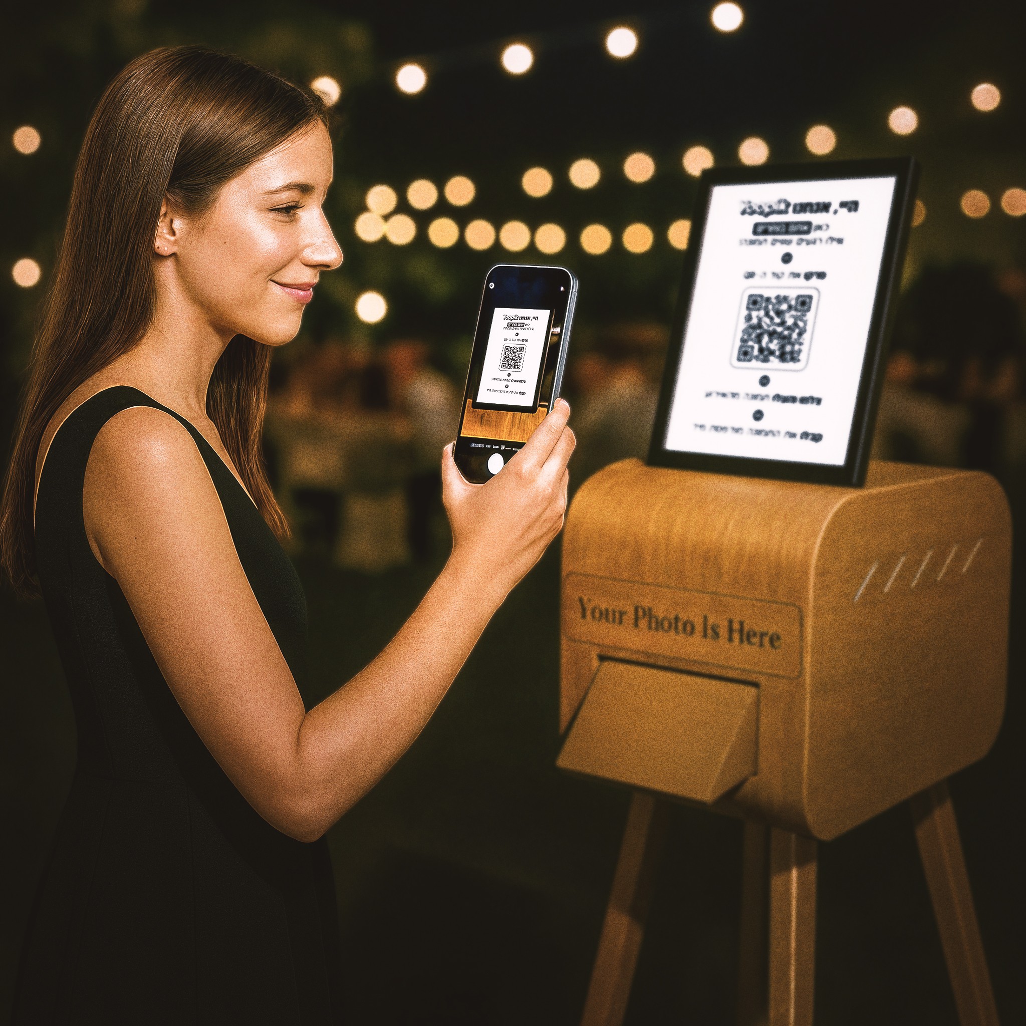 במקום לחפש צלם או לעמוד בתור לעמדה, כל אורח פשוט מצלם מהטלפון שלו, שולח בלחיצה, והתמונה מודפסת במקום עם מסגרת מותאמת לאירוע שלכם.